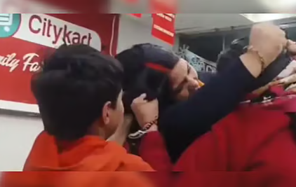 सध्या सोशल मीडियावर एक व्हिडीओ चांगलाच व्हायरल होताना दिसतोय.(suddenly) यामध्ये दोन महिलांची तुफान हाणामारी पाहायला मिळतेय. उत्तर प्रदेशातील सोनभद्र जिल्ह्यातील रॉबर्ट्सगं जवळच्या सिव्हिल लाईन रोडवरील सिटीकार्ट शॉपिंग मॉलमध्ये हा प्रकार घडला. शनिवारी संध्याकाळी ३ वाजण्याच्या सुमारास हा गोंधळ उडाला होता.तिथल्या काही लोकांच्या सांगण्यानुसार, एक तरुण त्याच्या गर्लफ्रेंडसोबत शॉपिंग करण्यासाटी आला होता.