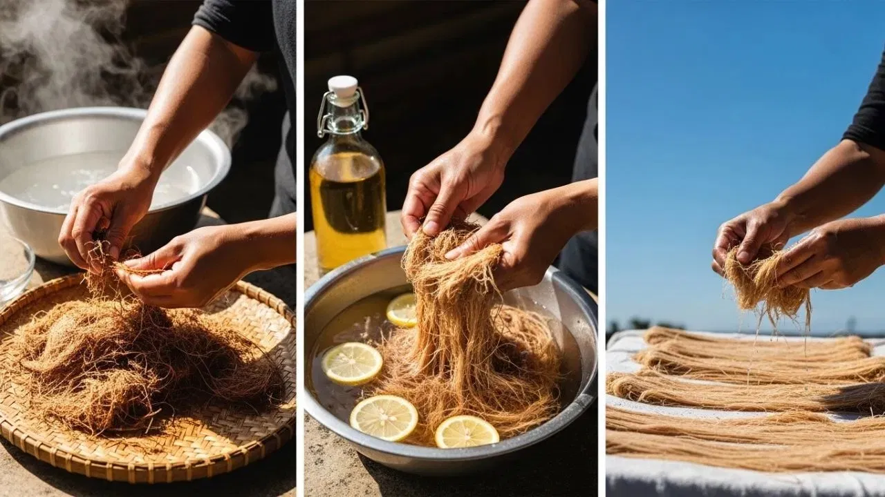 नारळाचे नैसर्गिक तंतू मजबूत आणि दीर्घकाळ टिकणारे असतात आणि त्यात नैसर्गिक बॅक्टेरियाविरोधी गुणधर्म देखील असतात. प्लास्टिक स्क्रबर लवकर तुटतात आणि त्यावर जंतू जमा होतात, परंतु नारळाच्या तंतूंपासून बनवलेला स्क्रबर हा स्वस्त, सुरक्षित आणि पर्यावरणासाठी चांगला पर्याय आहे.स्क्रबर बनवण्यासाठी,(coconut) तुम्हाला फक्त वाळलेल्या नारळाच्या तंतू आणि बांधण्यासाठी धागा किंवा पातळ दोरीची आवश्यकता आहे. हे साहित्य घरी सहज उपलब्ध आहे, म्हणून हा एक सोपा आणि स्वस्त उपाय आहे. प्रथम, नारळाचे तंतू वेगळे करा आणि धूळ आणि घाण काढून टाकण्यासाठी त्यांना गरम पाण्यात 10 – 15 मिनिटे भिजवा.