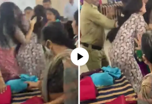 दोघीही एकमेकांवर हल्ला चढवला आहे. एकमेकींचे केस ओढत एकमेकांनी ओरबाडत आहेत. एकीने दुसऱ्या महिलेची गचंडी धरत तिला खाली पाडले आहे. दावा केला जात आहे की, दोघींनाही एकच साडी आवडली होती, यावरुन दोघींमध्ये तुफान हाणामारी झाली. व्हिडिओमध्ये तुम्ही पाहू शकता की, महिलांची भांडणे थांबवण्याचा प्रयत्न सुरु आहे. एक सेक्युरिटी गार्ड देखील आहे, पण दोन्ही महिला काही ऐकण्याचे नाव घेईनात. सध्या हा व्हिडिओ सोशल मीडियावर तुफान वेगाने व्हायरल होत आहे.