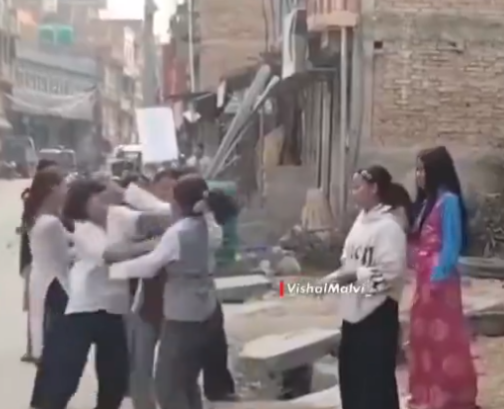 मुलीचं डोकं नाल्यात आणि पाय हवेत अशी हास्यास्पद अवस्था तिथे घडते, ज्यानंतर इतर मुली धावत पळत तिला वाचवण्यासाठी तिच्या दिशेने धाव घेतात. नाल्यात पडलेल्या मुलीचे पाय पकडून तिला बाहेर काढले जाते. गरम झालेले संपूर्ण वातावरण क्षणातच या घटनेने हास्याचे रुप घेते. मुलींची ही अनोखी फाईट आता सोशल मिडियावर चांगलीच व्हायरल झाली असून यातील दृश्य पाहून लोकांना आपले हसू काही केल्या थांबवत्या येत नाहीये.
