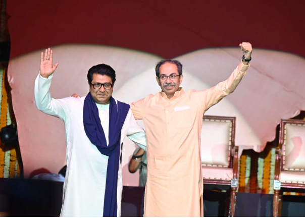 मतदार यादी घोळाच्या मुद्द्यावरून मुंबईत राजकीय(political news) रणसंग्राम पाहायला मिळाला. निवडणूक आयोगाविरोधात मनसे-मविआ सत्याचा मोर्चा काढला. यामध्ये राज ठाकरे, उद्धव ठाकरे, शरद पवारांसह दिग्गज नेते उपस्थित होते आहे. ठाकरे बंधू एकक्ष आले तरी त्यांनी युतीची जाहीर घोषणा केलेली नाही. मात्र, महाष्ट्राला आता सांगायची किंवा जाहीर करायची गरज नाही, युती झाली? राज ठाकरे आणि उद्धव ठाकरे दोघांनी भाषणत एक असा शब्द वापरला की ज्यावरुन यांची युती झाल्याचे स्षष्ट होते.