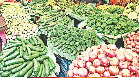 प्रतिकिलो रुपये – भाजीपाला : टोमॅटो- ३० ते ४०, दोडका- ६० ते ८०, वांगी -८० ते १००, कारली- ५० ते ६०, ढोबळी मिरची- ६० ते ८०, मिरची – ४० ते ५०, फ्लॉवर – ५० ते ६०, कोबी- २० ते २५, बटाटा – ३० ते ३५, कांदा -४० ते ५०, लसूण – ६० ते ८०, आले – ६० ते ८०, लिंबू – ३०० ते ४०० शेकडा, गाजर – ५० ते ६०, हिरवा वाटाणा – ७० ते ९०, बीन्स – ८० ते १००, देशी गवार – १२० ते १६०, वरणा – ६० ते ८०, भेंडी – ८० ते १००, देशी काकडी – ६० ते ८०, काटा काकडी – ३० ते ४०, दुधी – ५० ते ६०, कांदापात, मेथी -१५ ते २०, भाज्या -८ ते १० रुपये पेंढी, शेवगा -२५ ते ३० रुपये नग. फुले : झेंडू – ८० ते १००, निशिगंध – २०० ते २५० गुलाब – ३०० ते ३५० , गलांडा – १२० ते १५०, शेवंती – १५० ते २००. फळे : देशी सफरचंद – १५० ते १६०, विदेशी सफरचंद – ३०० ते ३५०, संत्री – १२० ते १५०, मोसंबी- ८० ते १००, डाळिंब – १५० ते ४००, चिकू- १२० ते १५०, पेरू – ८० ते १००, पपई- ३० ते ६०, मोर आवळा -१२० ते १५०, सीताफळ – १०० ते १५०, कलिंगड – १०० ते १२०, टरबूज -४० ते ६०, केळी – ४० ते ५० डझन, देशी केळी – ७० ते ८० डझन, किवी – १३० ते १५०, ड्रॅगन – १८० ते २००, चिंच- १०० ते १४०, राणी अननस – १२० ते १५०. खाद्यतेल : सरकी – १४५ ते १५०, शेंगतेल – १८० ते १९०, सोयाबीन – १४० ते १४५, पामतेल – १४० ते १४५, सूर्यफूल – १६० ते १६५. कडधान्य : हायब्रीड ज्वारी- ३५ ते ५५, बार्शी शाळू- ५० ते ६०, गहू – ३३ ते ४४, हरभराडाळ – ७२ ते ७५, तूरडाळ- ११० ते १२०, मूगडाळ -१०० ते ११०, मसूरडाळ – ८० ते ९०, उडीदडाळ – ११० ते १२० हरभरा- ७० ते ७५, मूग – ११० ते १३०, मटकी- १३० ते १५० मसूर- ७५ ते ८०, फुटाणाडाळ – ८५ ते ९०, चवळी- ९० ते १२०, हिरवा वाटाणा – १४०, छोला – १०० ते १३०.